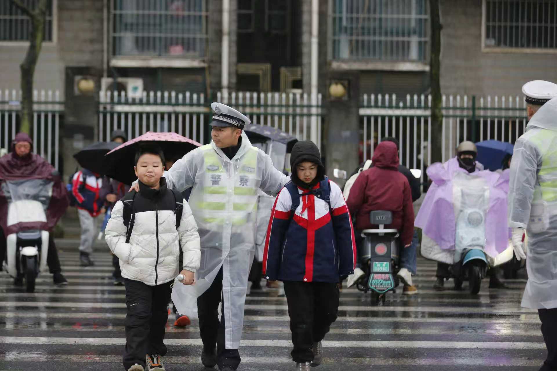 3月2日,春季开学首日,又遇阴雨天气,芜湖市公安局交管支队启动应急预案,在城区各中小学校启动“护学岗”,全力守护学生出行安全。