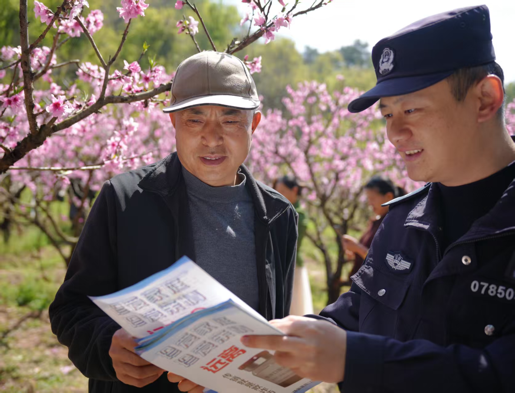 3月28日,2026铜陵周潭大山桃花荟在周潭镇大山村盛大启幕,漫山桃花次第绽放、缀满枝头,吸引了大批游客前来踏青赏景、休闲打卡。为确保活动有序开展、游客安全无忧,铜陵市公安局郊区分局组织民警、辅警主动下沉景区,全面开展巡逻防控、安防宣传等工作,用坚守与担当为此次桃花荟保驾护航,守护游客出行平安。(陈青云)