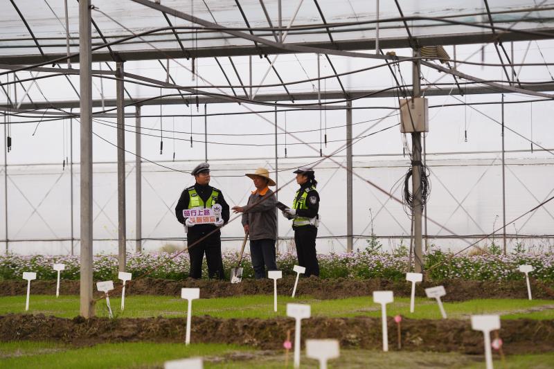 4月7日,南陵县公安局交管大队民警辅警深入弋江镇柿坝村田间地头,了解群众之需,并向他们宣传“一盔一带”、谨防酒驾、疲劳驾驶等交通安全知识,共护春耕安全生产。