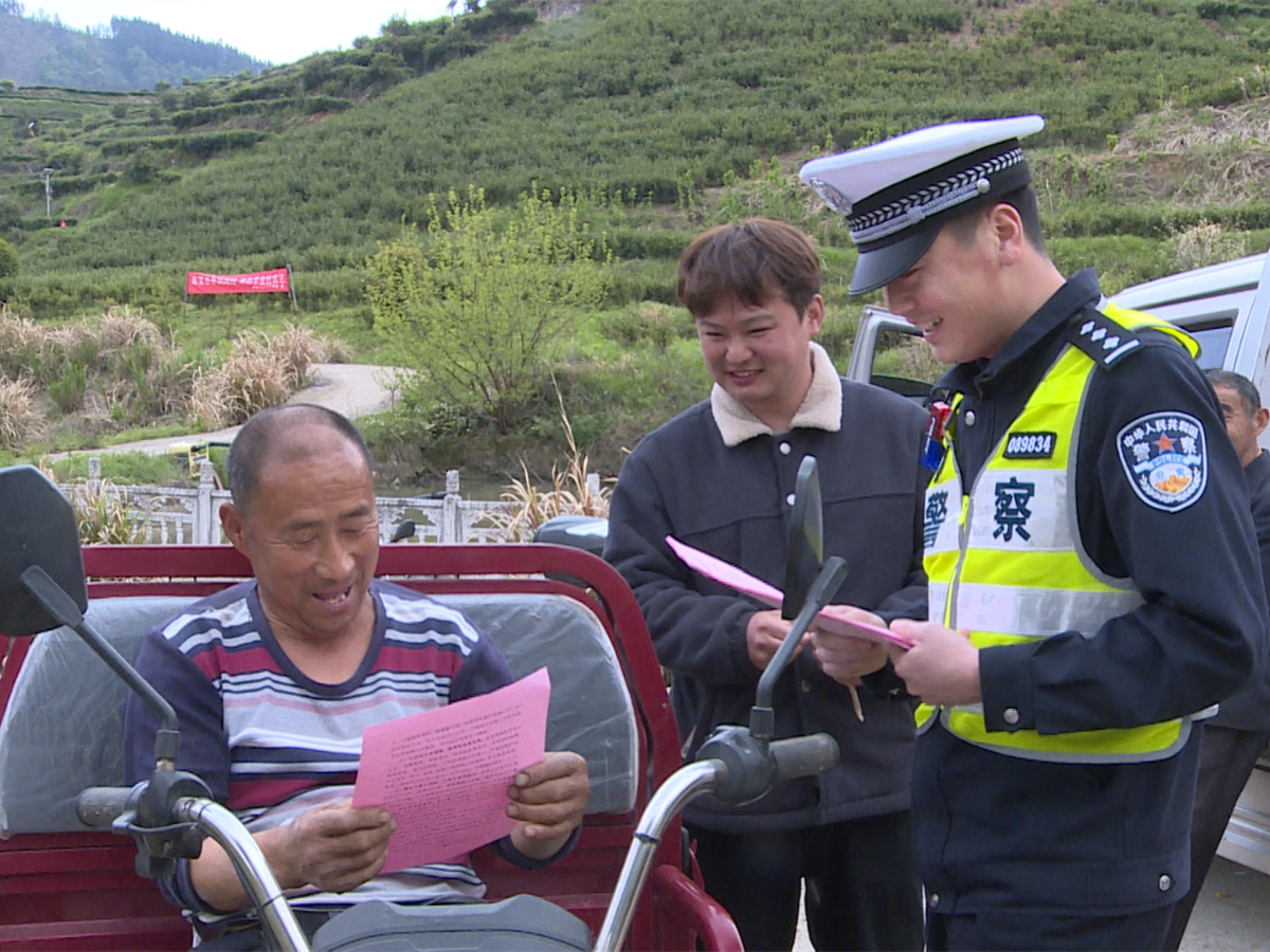 “咱们骑三轮车出门,千万不能带人,同时自己要把头盔正确佩戴好,关键时候真能保命!”民警一边为一位骑三轮车准备下山的茶农系紧头盔束带,一边叮嘱道。在唠家常式的宣传中,民警现场发放《致广大茶农、茶商和采茶工朋友们的一封信》等宣传资料,特别强调了超员载客的危害:“平常开车路上,遇到熟人招手让你带,咱们车核载5人,就不能载6个,多一个,就是多一份风险,再有提醒坐车的人都要系好安全带。”通过这种贴近生活的交流方式,民警将“一盔一带”的重要性以及农用车、三轮车违法载人、超员载客的危险性,深深印入群众心中。民警们还结合近年来发生在山区道路的典型交通事故案例,以案说法,用血的教训警示大家务必遵守交通法律法规,摒弃交通陋习和侥幸心理,生动的讲解让现场的采茶群众频频点头,安全防范意识在潜移默化中得到提升。