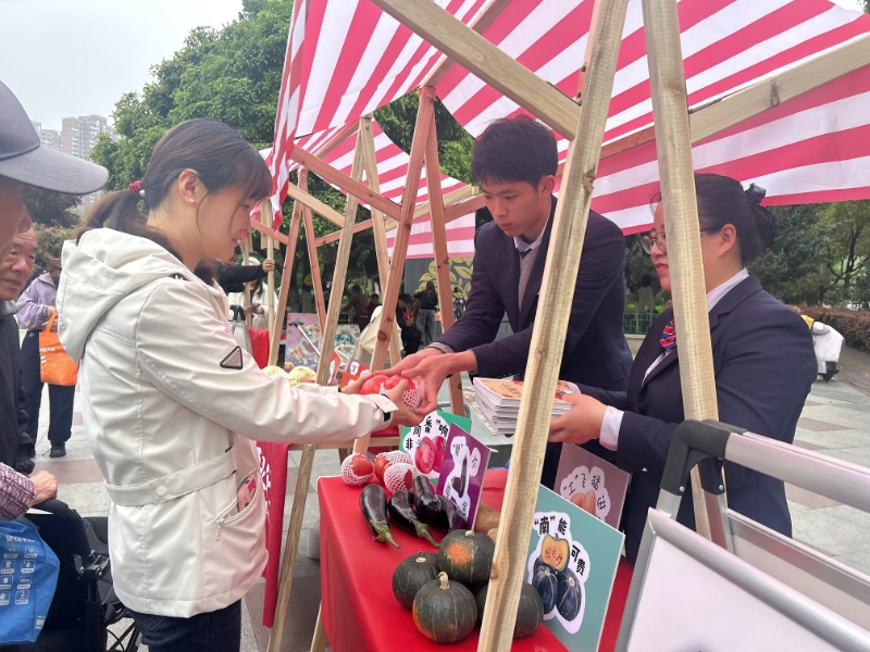 当天上午9时,低碳环保市集三大区域同步开放,现场氛围热烈。在闲置物品置换区,新鲜水灵的时令蔬菜整齐摆放,居民们拎着提前分类好的旧书、闲置家居等物品纷至沓来,以闲置物品兑换新鲜蔬菜,形成独具特色的绿色“交易”场景。在不远处的环保手作展区,辖区商户与居民携手,利用废弃纸盒制作四色分类垃圾桶模型,以画笔勾勒环保主题画卷,生动诠释“垃圾是放错位置的资源”,引得过往居民驻足拍照。知识宣讲区前,工作人员借助实物模型、宣传展板,深入浅出讲解四类垃圾区分技巧与投放规范,随后开展的垃圾分类有奖问答将现场气氛推向高潮,居民们踊跃参与、争相抢答,纸巾、环保钥匙扣等小礼品不断送出,在一问一答之间,分类知识已悄然入心。