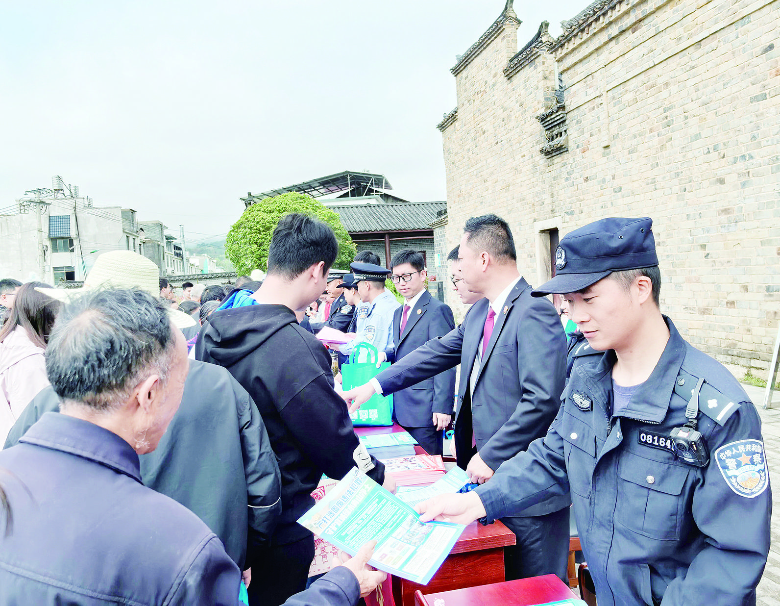 4月10日,太湖县公安局刘畈派出所联合县法院、检察院及乡司法所,在刘畈高干会议旧址胡氏宗祠广场开展普法宣传活动。工作人员通过设立咨询台、发放资料、现场答疑等形式,向群众普及法律知识。