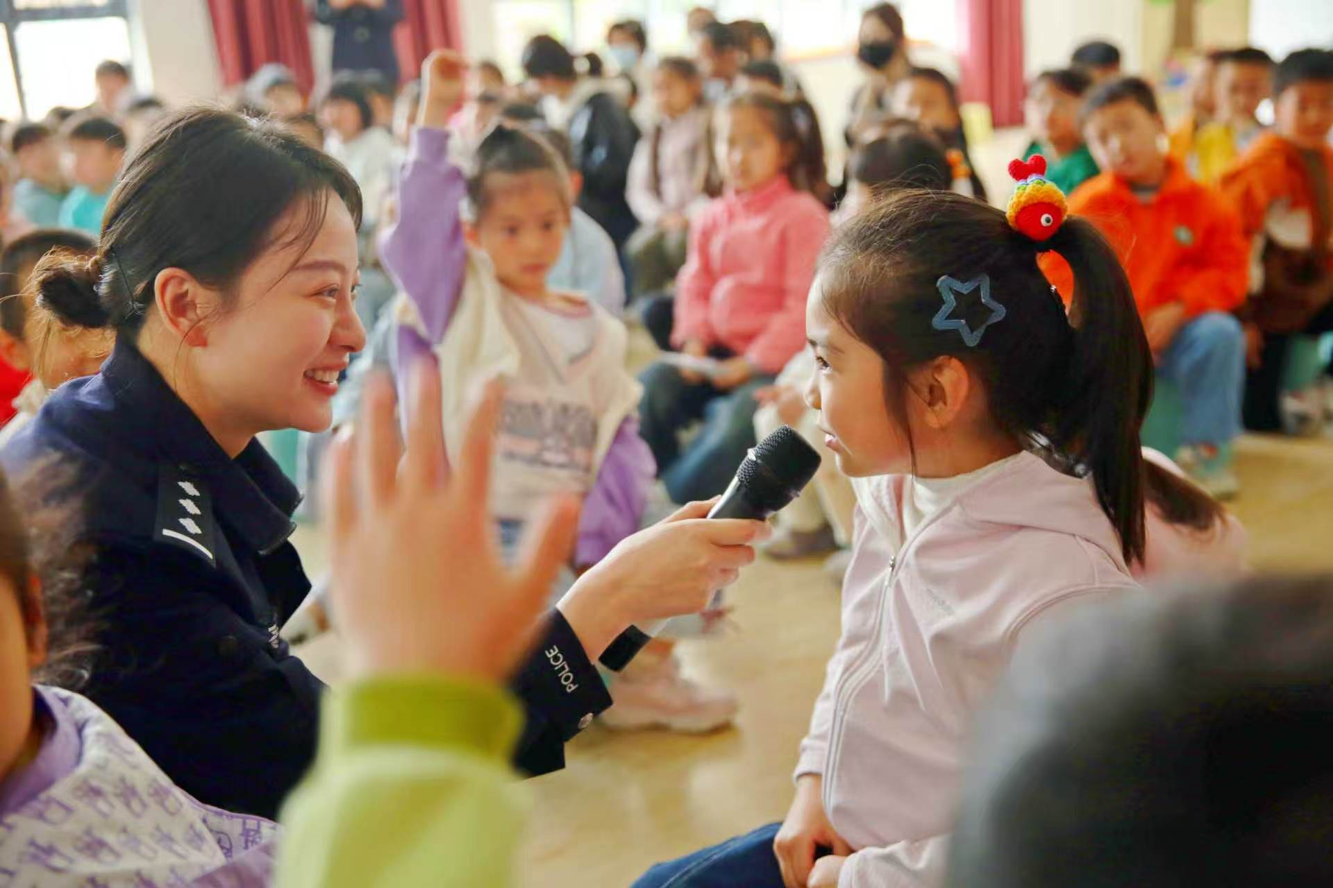4月16日,马鞍山市公安局雨山分局民警走进辖区幼儿园,开展防拐骗知识宣传活动。民警通过情景互动、趣味问答、卡通教具等形式,给孩子们讲解如何辨别陌生人、拒绝陌生食物等实用技巧,为校园安全筑起坚实屏障。(通讯员 尹德钰 记者 李斐 摄)
